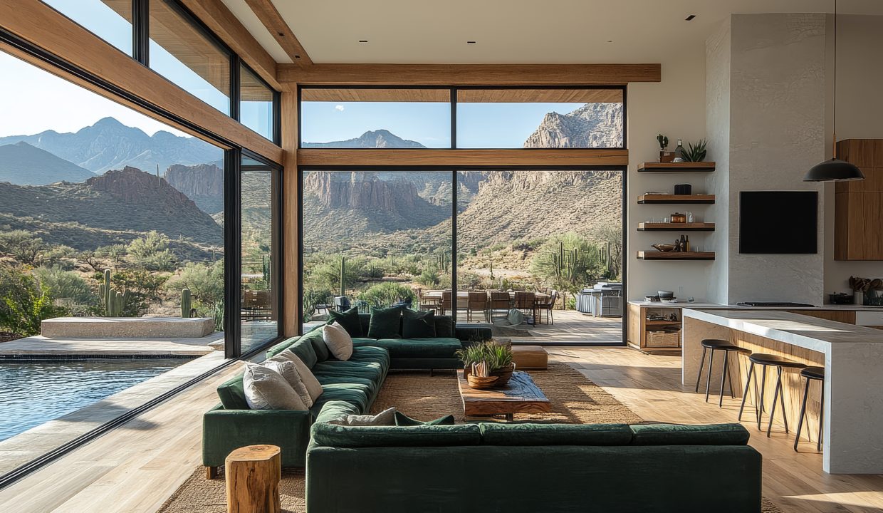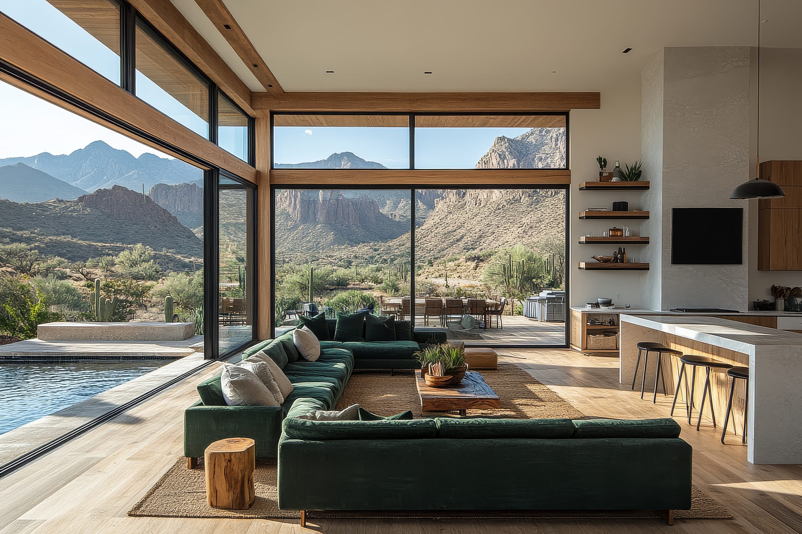 • Natural light and layered lighting. Make daylight the star with large openings and sheer fabrics. After dark, layer ambient, task, and accent light to create warmth and depth.