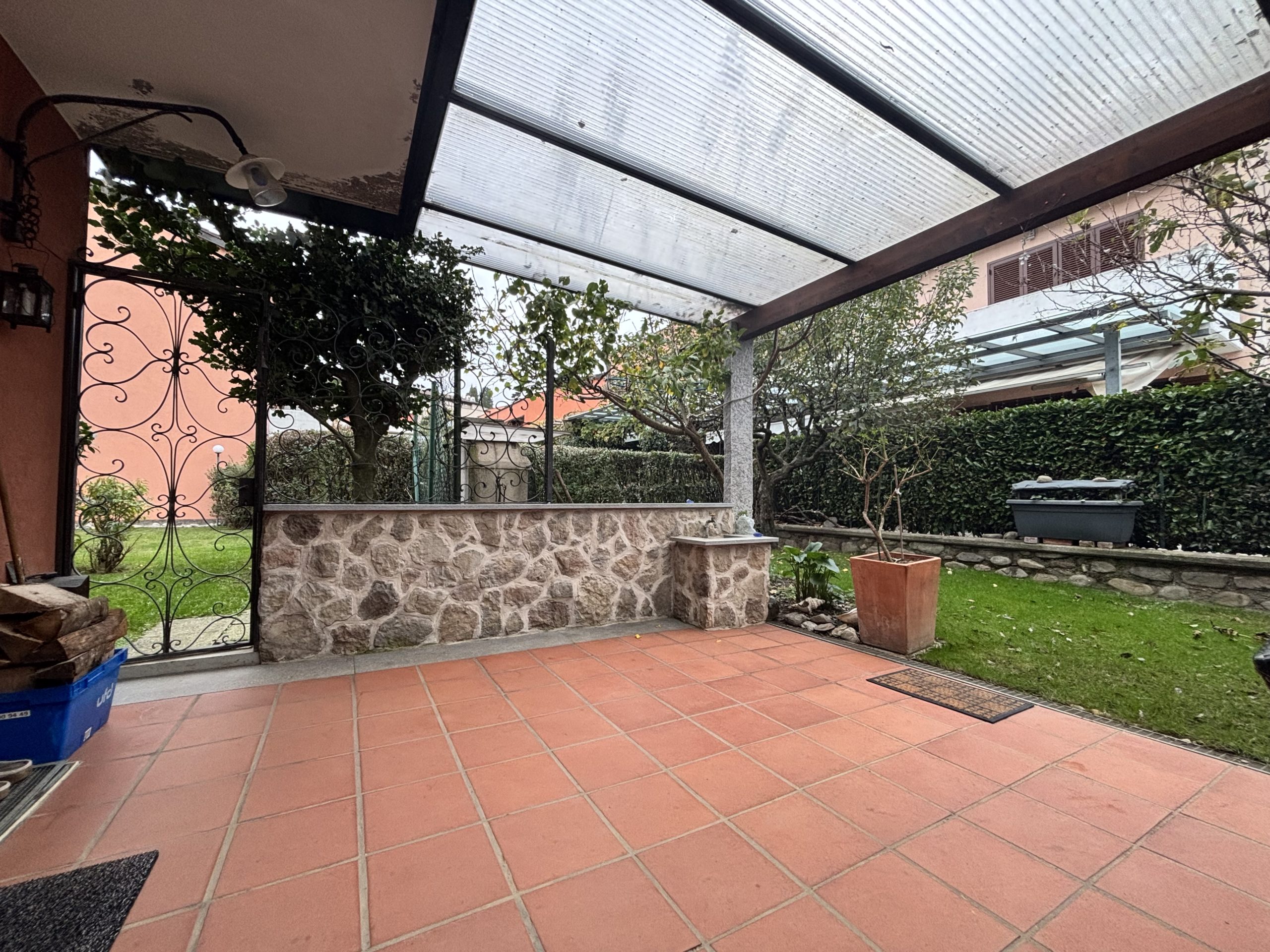 Giardino privato curato, con zona pranzo coperta e piastrellata